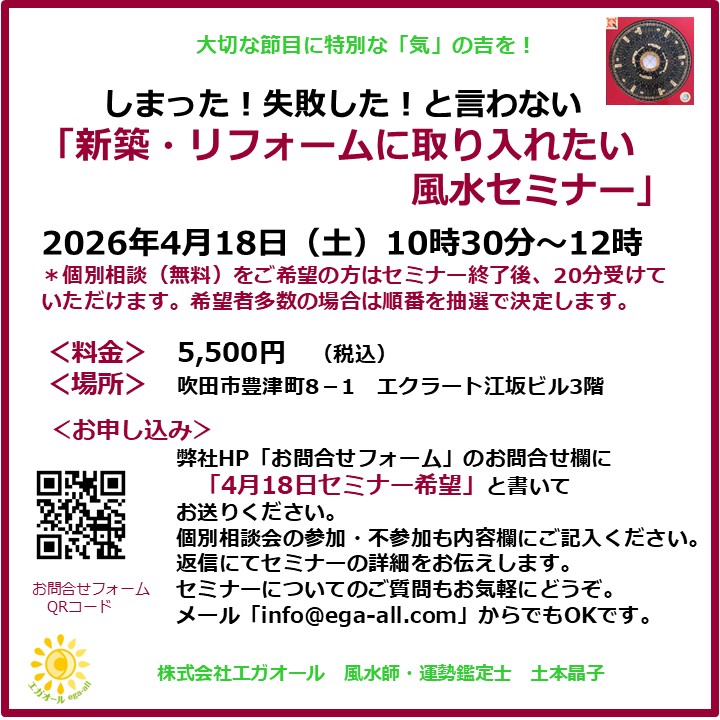 【新築・リフォームに取り入れたい風水セミナー】