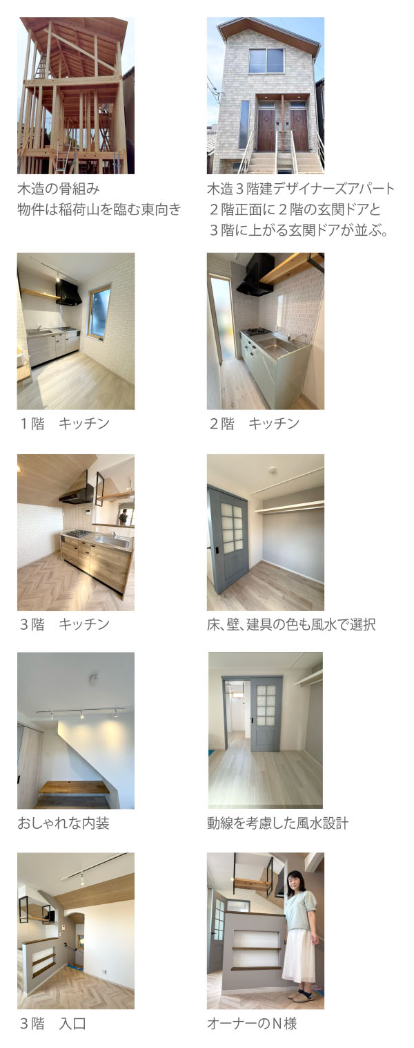 ご依頼くださったN様は以前にも収益物件2軒を風水リフォームされています。今回、土地の吉凶判断のご相談から物件の玄関位置、間取り、内装、外壁まで風水でご提案をさせていただきました。