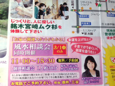 「風水開運、鑑定コーナー」としてチラシ配布。